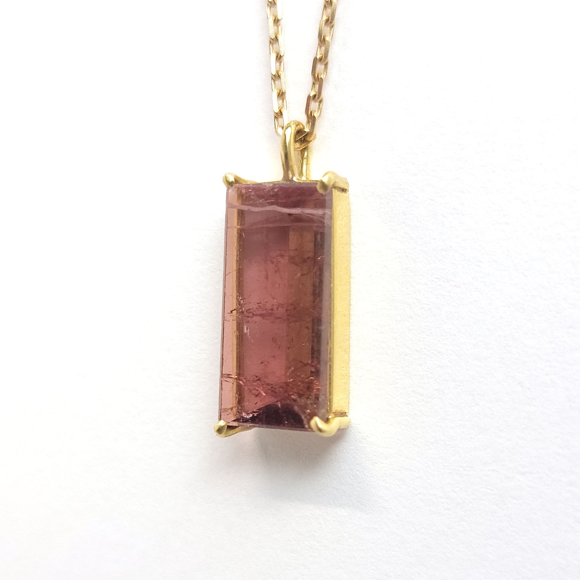 Gold Pendant - Mirror Pink Tourmaline